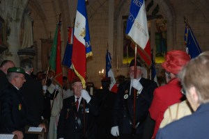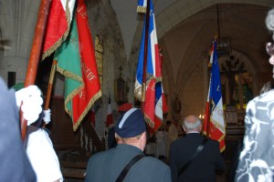 Les porte-drapeaux sortent de l’église.