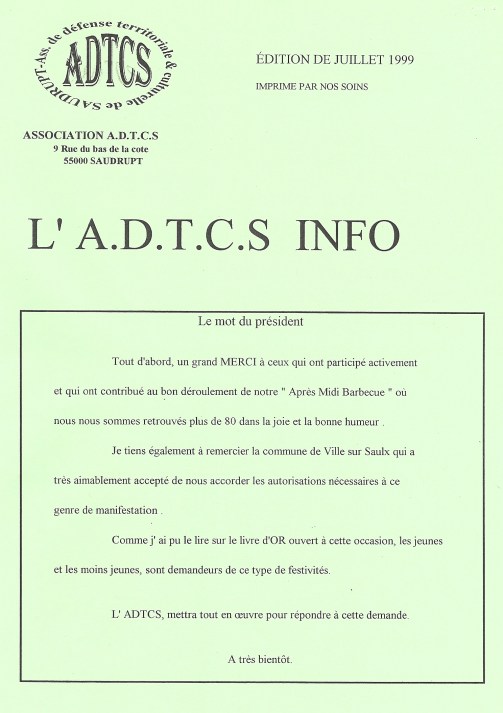 Juillet 1999: Parution de l’ADTCS Info dans sa 3éme édition.