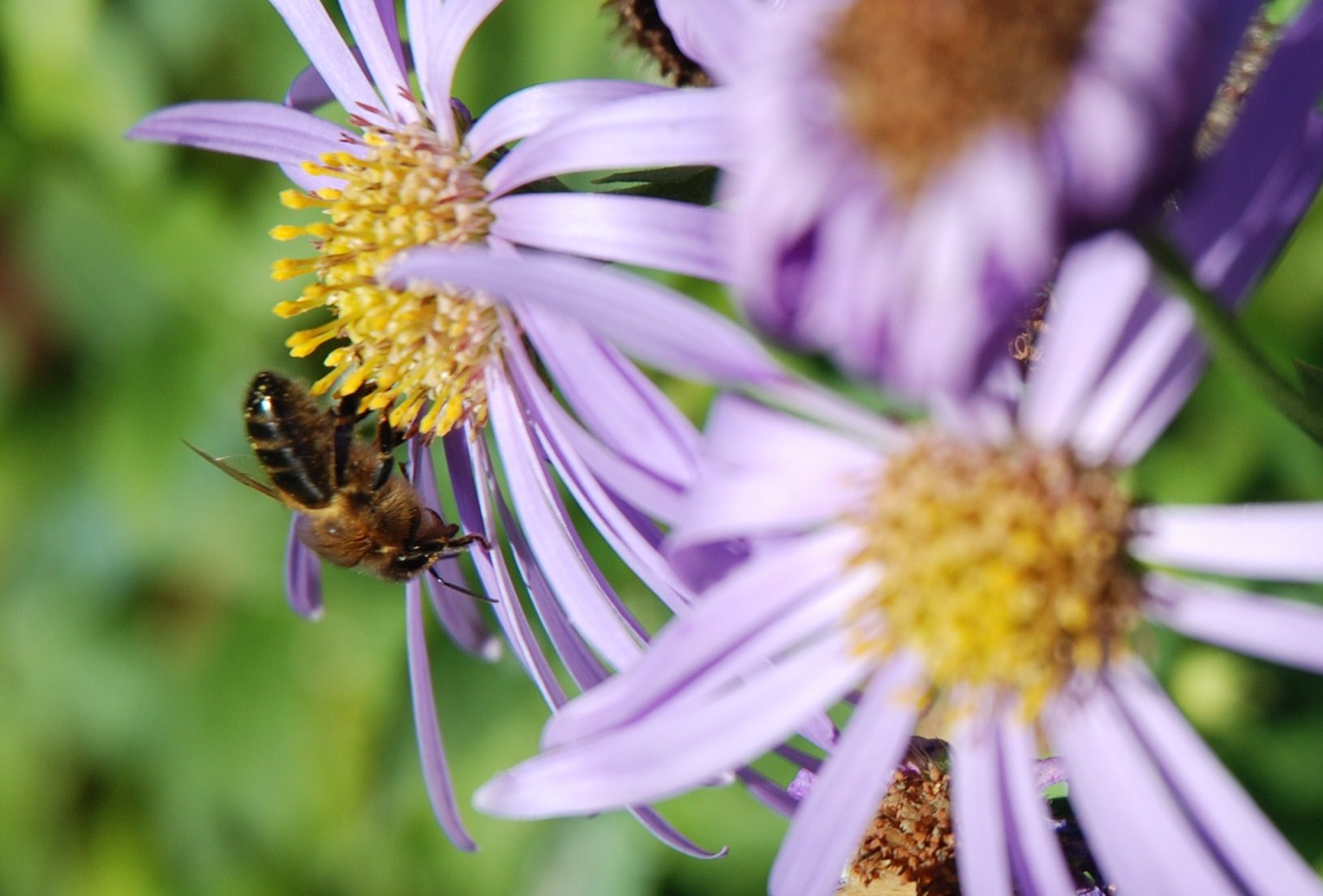 surtout les Asters, trés présents à Saudrupt dans nos jardins, à petites ou grandes fleurs, encore butinées par ce temps étonnement doux, et…une rose.