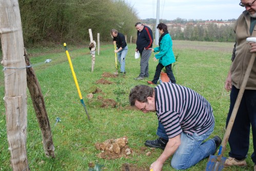 Notre première activité, réalisée en groupe, avait été d’oeuvrer à mieux délimiter le périmètre de la nécropole par des plantations, essentiellement de buis, ce qui, actuellement, pose problème à cause de l’extension en France de la pyrale du buis.
