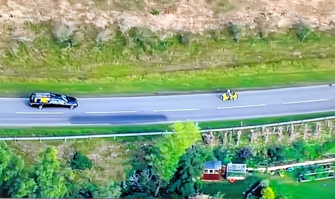 On perçoit la file des 6 voitures qui accompagnent le cercueil