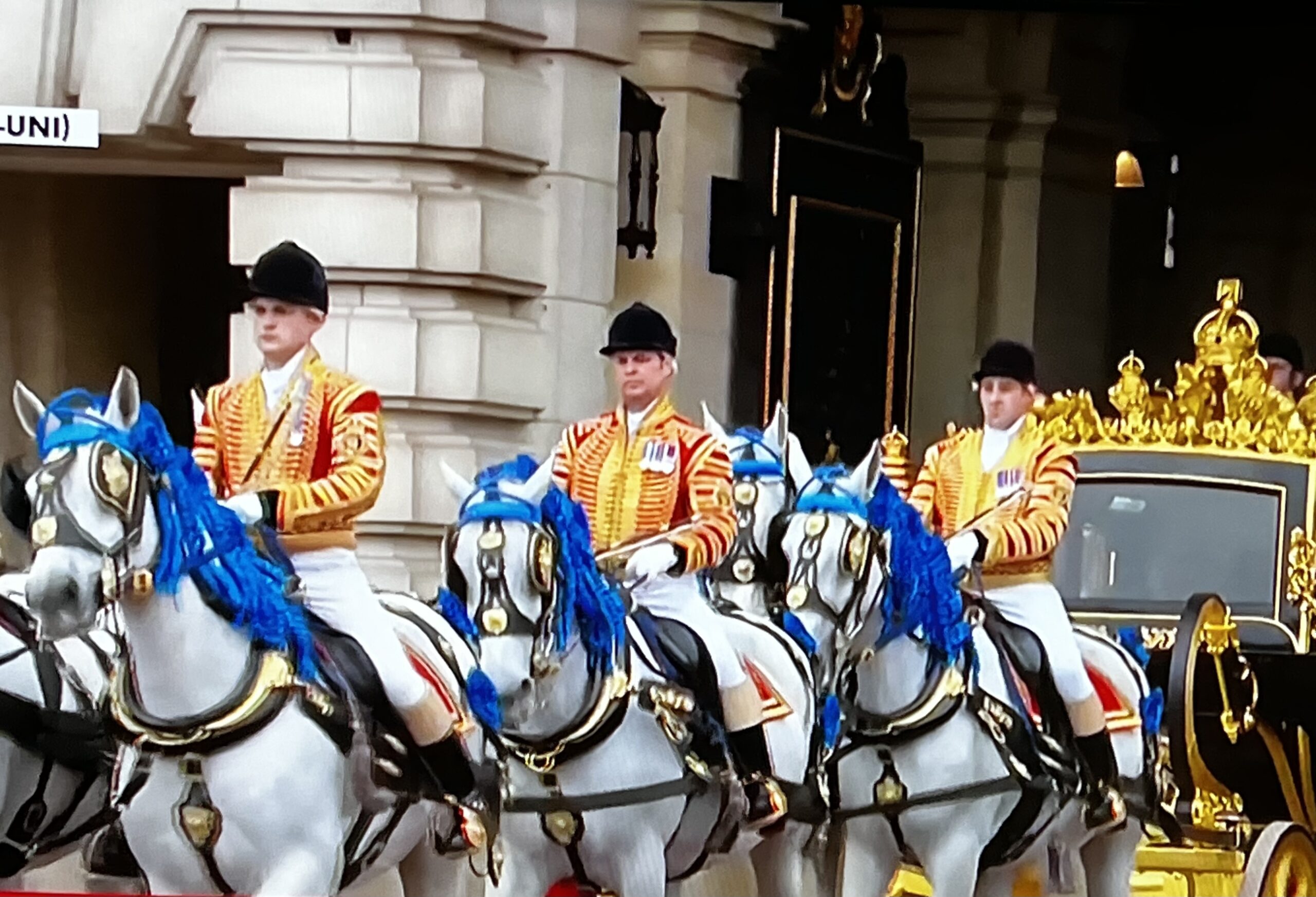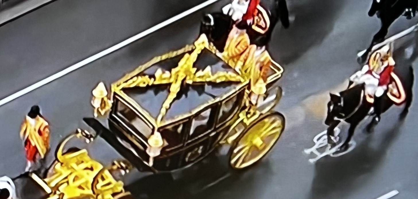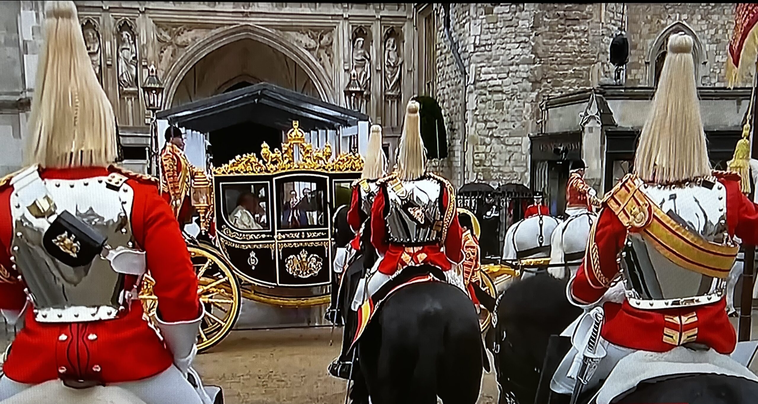 Le roi Charles III sort de Buckingham en carrosse pour se rendre à Westminster Abbey