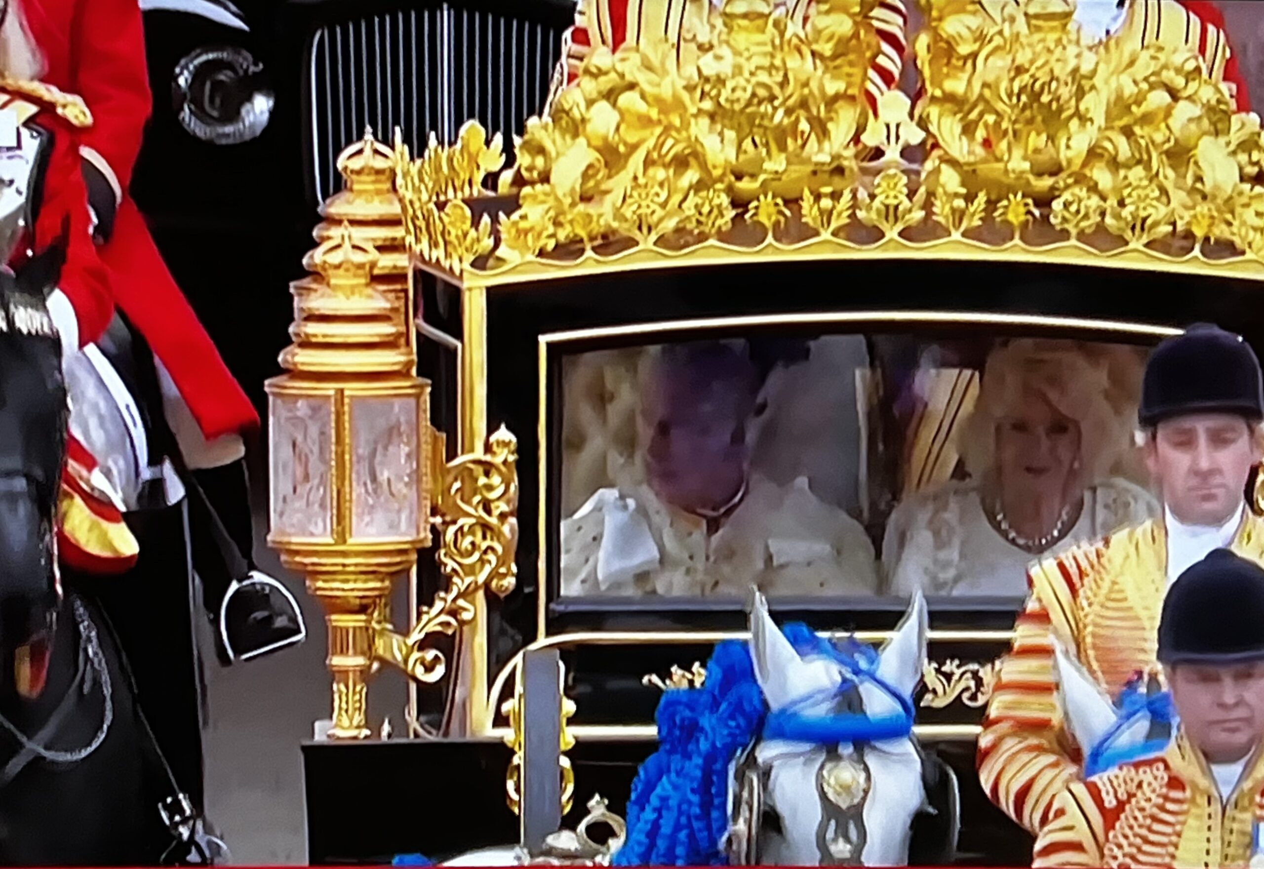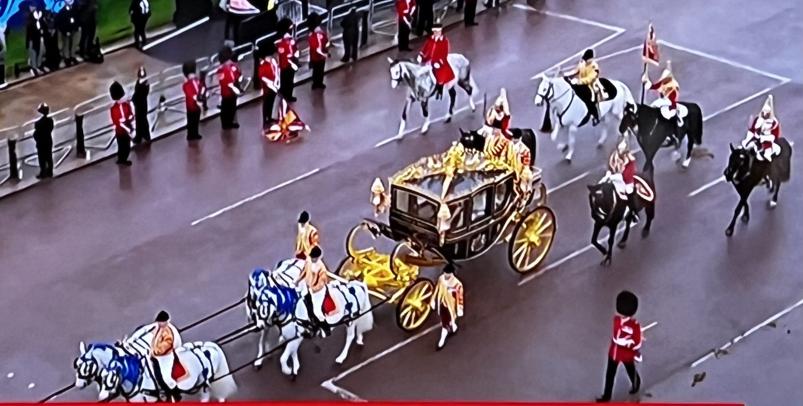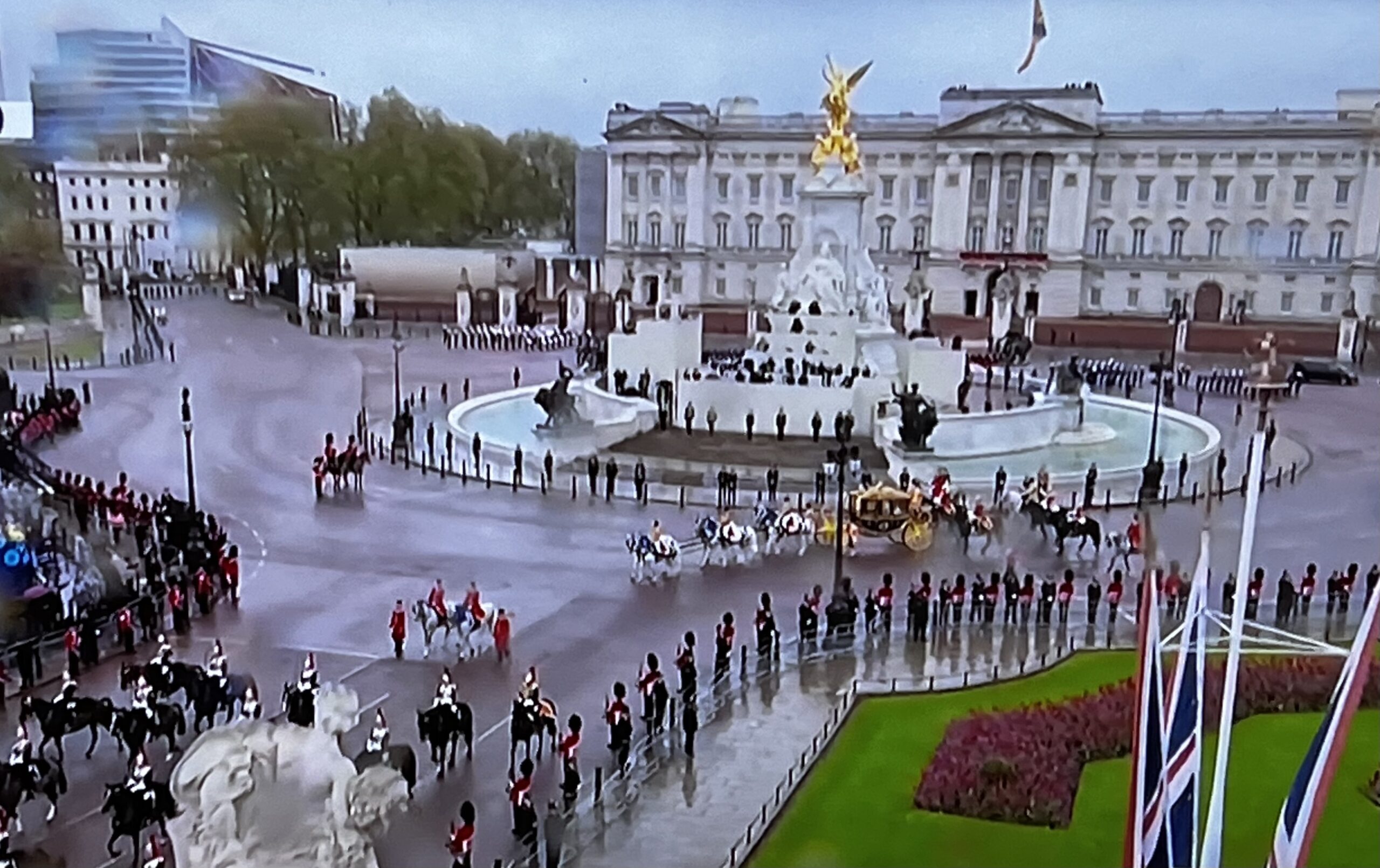 Le roi Charles III sort de Buckingham en carrosse pour se rendre à Westminster Abbey